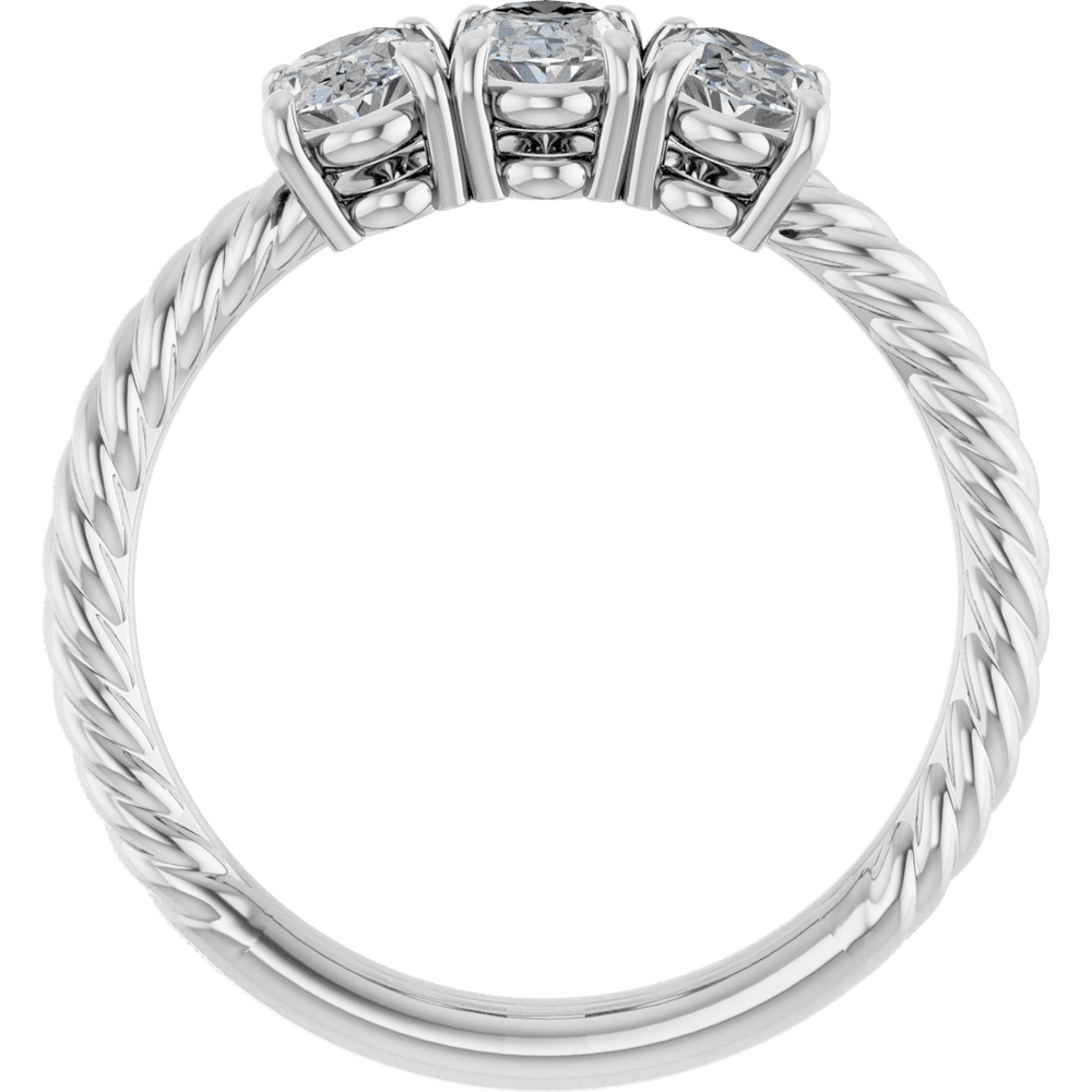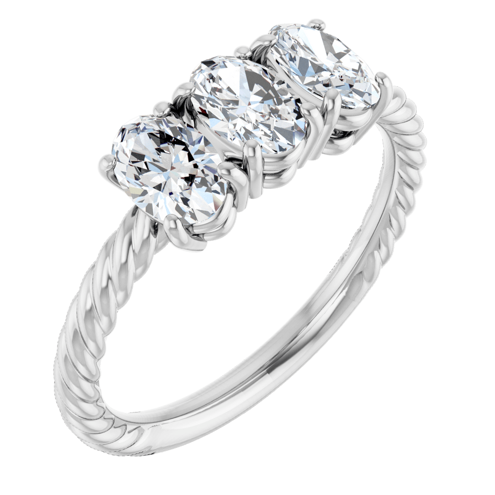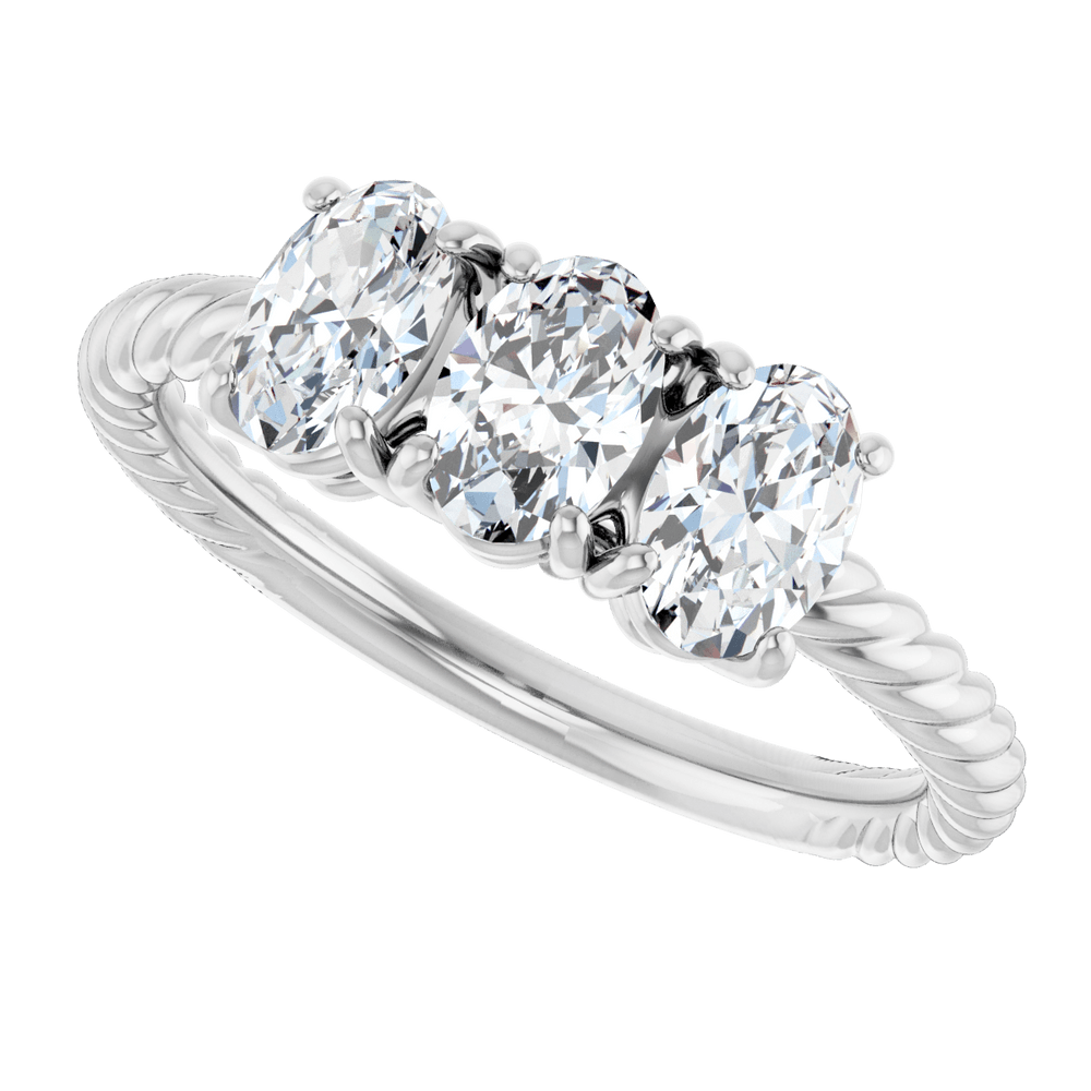 Discover unparalleled elegance with our 14K Three-Stone Ring, featuring stunning 3 carat total weight Lab-grown Diamonds and a beautifully braided designed band.