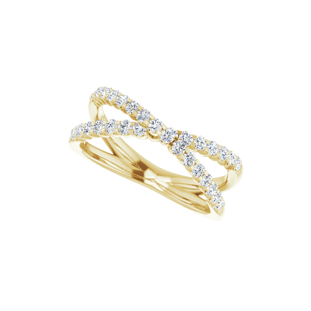 14K 1/2 CTW Lab-Grown Diamond Criss-Cross Ring, is a dazzling fusion of movement and elegance. Crafted with precision and passion, this exquisite piece commands attention with radiant collection of diamonds, totaling half a carat in weight.