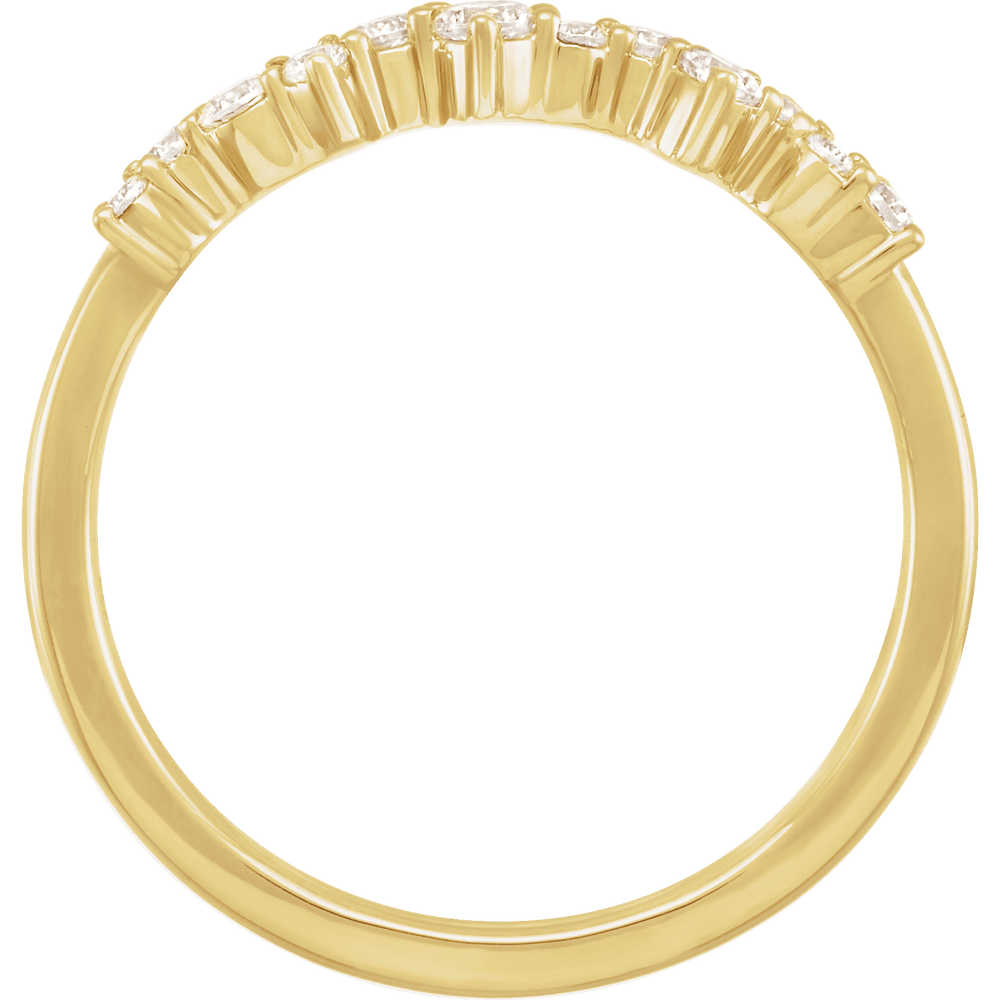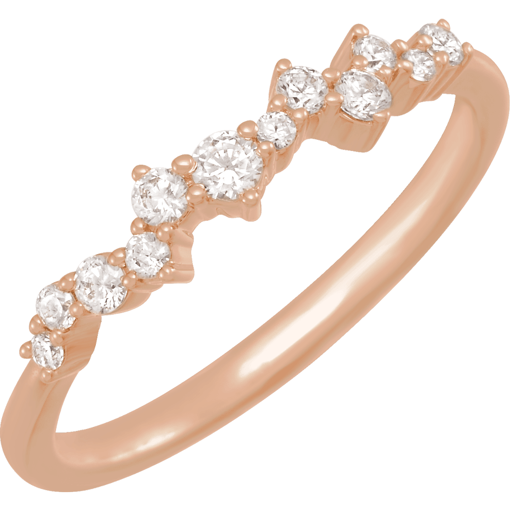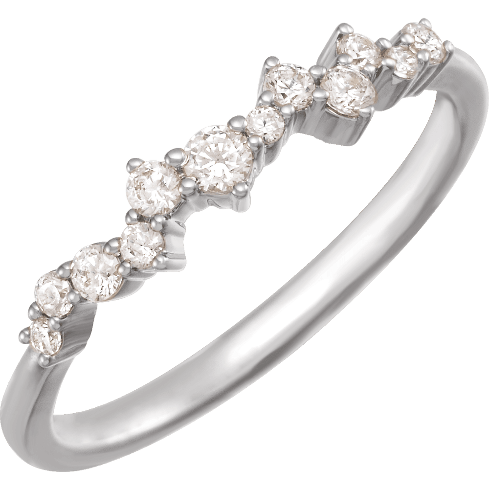 Twelve Lab-grown Diamonds, each unique in size, delicately scattered atop of the band. The shifting movement design seamlessly connects the diamonds creating an enchanting impression Whether worn as a symbol of everlasting love or to elevate everyday elegance, this ring is a captivating masterpiece that transcends trends and time.