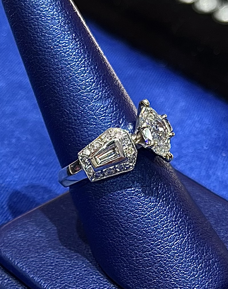 The history of the Marquise Diamond is as interesting as it is romantic. Legend has it that Louis XV encountered a beautiful woman during a masked ball at Versailles. He was so taken by her that he made her his chief mistress within his court as the Marquise de Pompadour/ Madame de Pompadour). He declared that her lips were the most perfect he had ever seen. When the king commissioned a royal jeweler to create a design and shape of diamond that looked most like her lips, the Marquise cut Diamond was born!