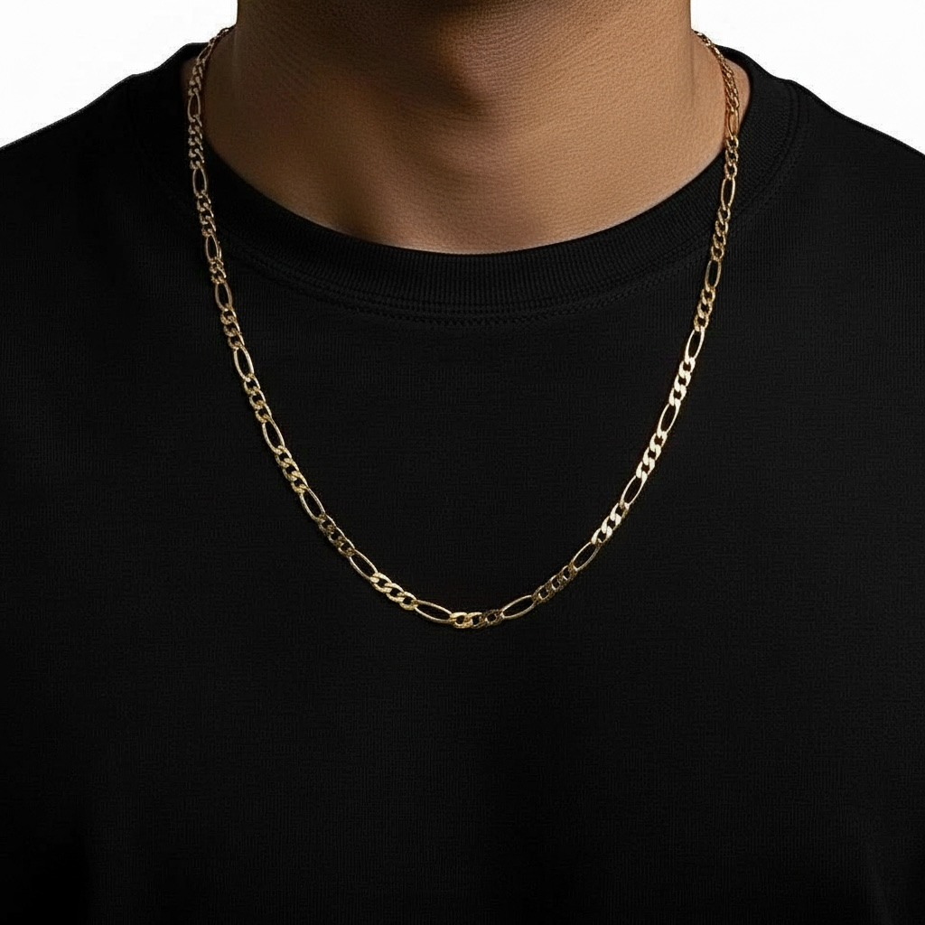 Figaro chains were named after the main characters of the classical operas 'The Barber of Seville' and the 'Marriage of Figaro.' The Figaro strongly connects with men's jewelry, making it very popular among men due to its simplicity in design.