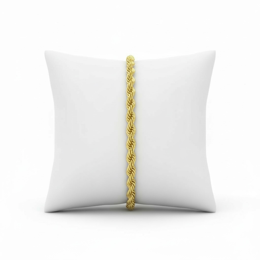 A glance: 8-inch, 5.0mm wide, rope style bracelet, in 14Karat Yellow Gold