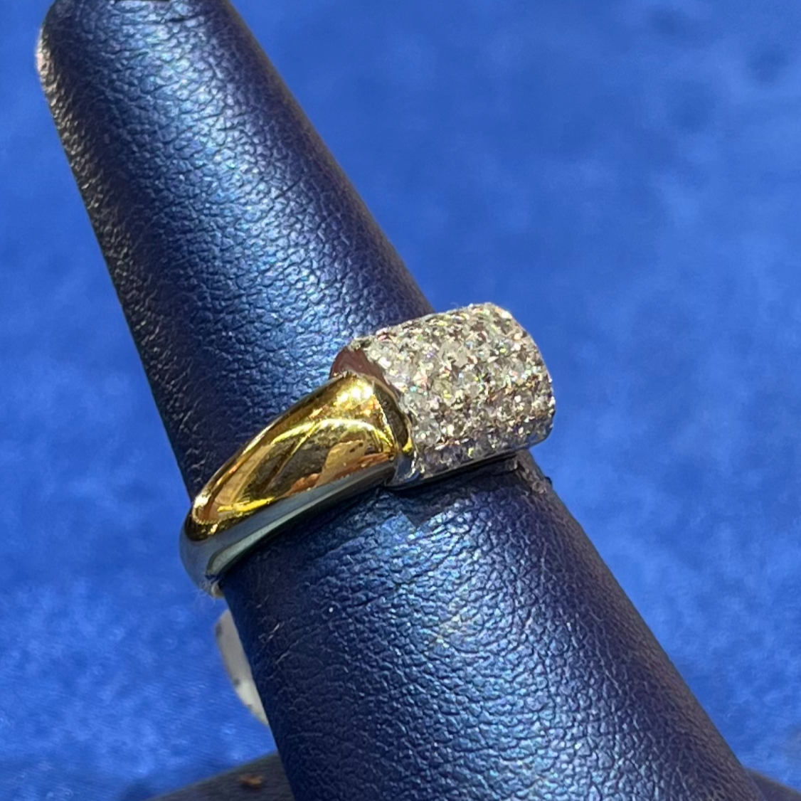 A glance: 6 rows of 6 Pave Diamonds, set on a band of 18K Yellow Gold