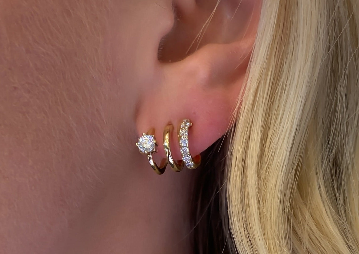 Triple Luxe Earrings (2 Earrings - A Pair) Yellow or White Gold